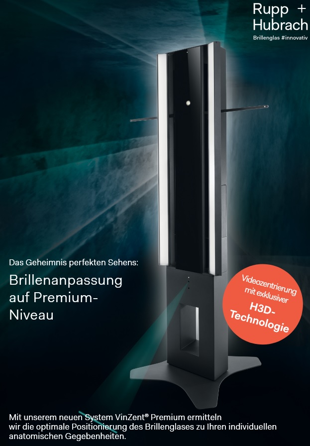 Mit der objektiven Untersuchung durch das Wellenfrontverfahren, die Erlebnisrefraktion mit dem PolaSkop 3D, und der präzisen Ermittlung des Augendrehpunktes durch das Vinzent-Gerät (Foto auf dieser Seite), sind alle Weichen gestellt, um das bestmögliche Sehen zu erreichen. Und für das gute Aussehen gibt es eine große Auswahl an modischen Brillen.